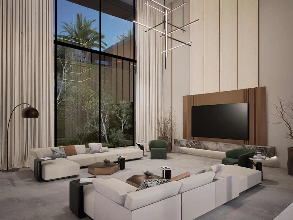 Modern living rooms today focus on comfort-driven minimalism. Clean lines, neutral palettes, and organic textures dominate contemporary homes designed by leading interior designers in Dubai.